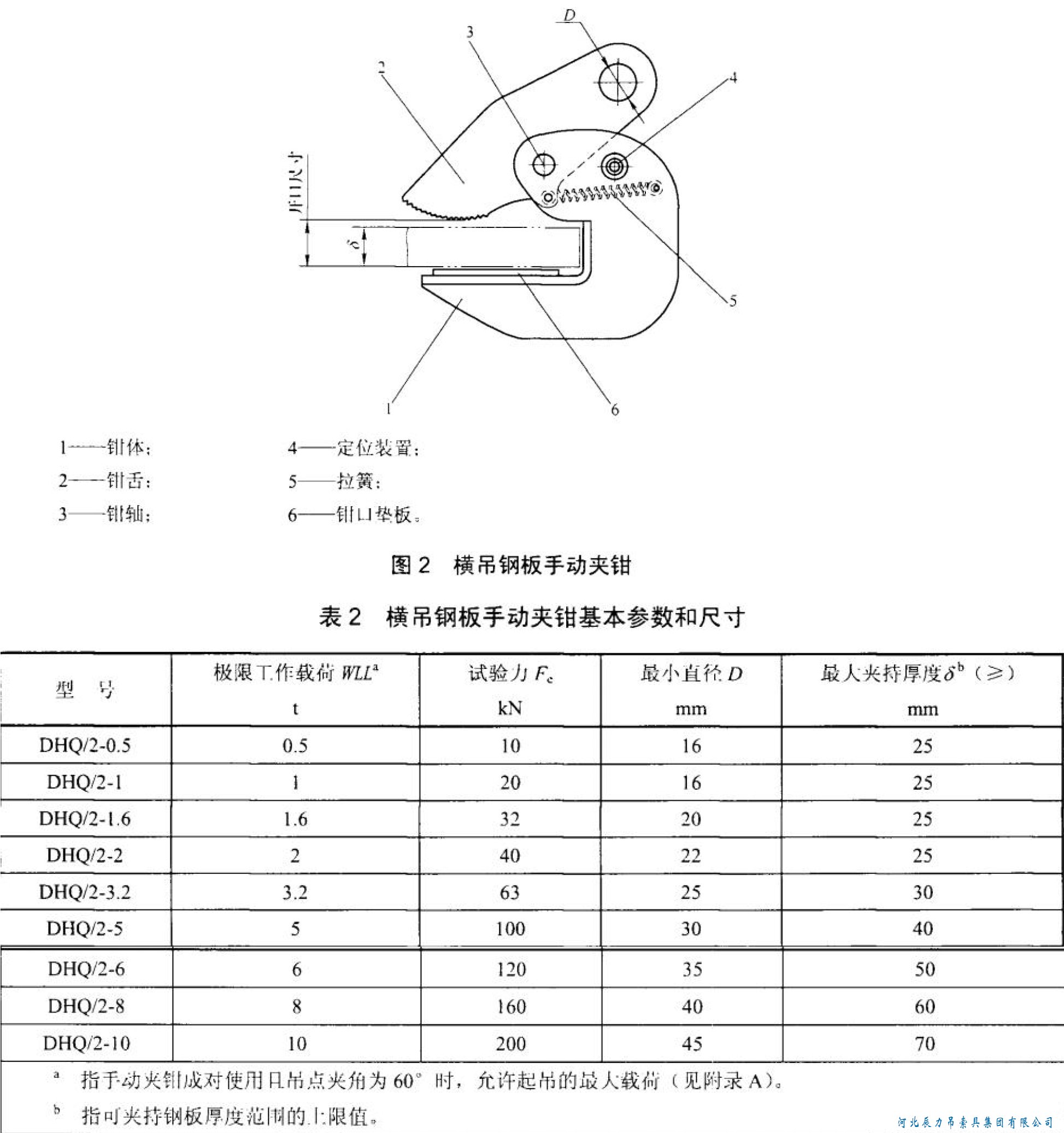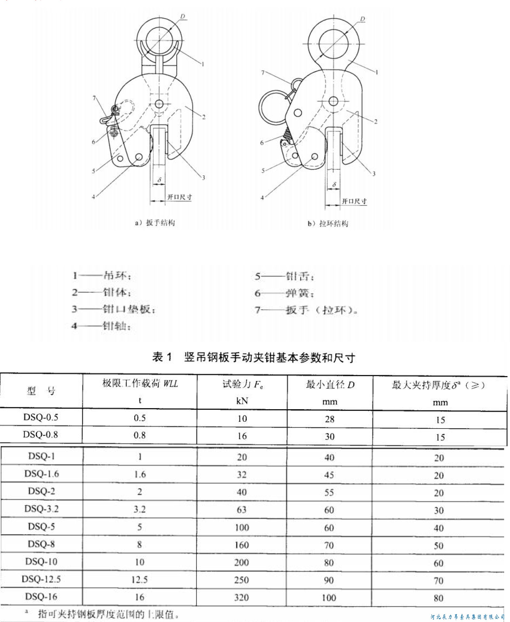 辰力鋼板起重鉗企業(yè)標準:起重鉗分類和標記